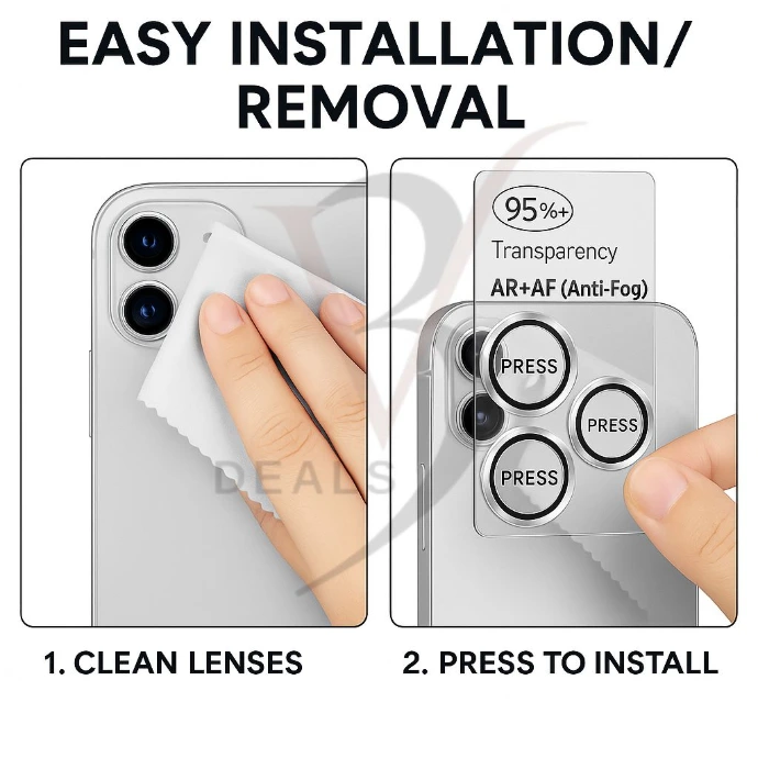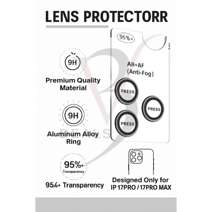 Built with 9H tempered glass and a strong aluminum alloy ring, this lens protector offers 95%+ ultra-clear transparency with advanced AR+AF anti-fog coating. Specially designed to fit iPhone 17 Pro & 17 Pro Max perfectly, ensuring long-lasting durability and crystal-clear photos.