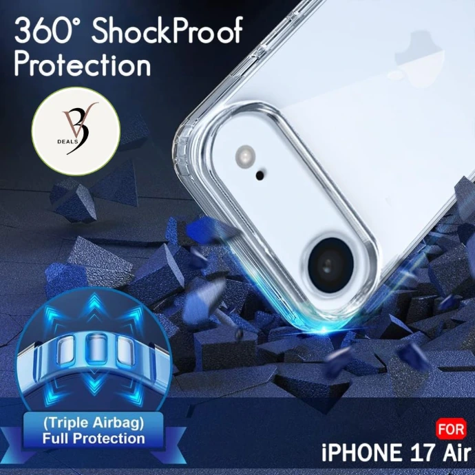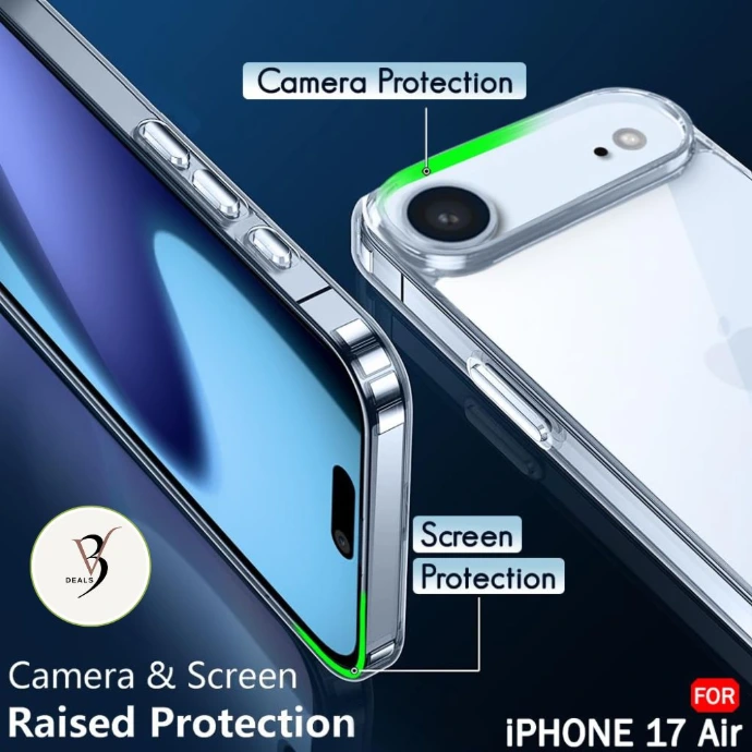 Showcase your phone’s original look with this crystal clear hard transparent back cover compatible with iPhone 17 Air. Built with durable hard material, it offers raised camera protection, scratch resistance, and a slim premium finish.