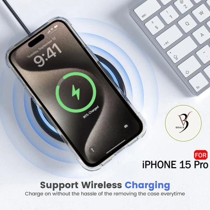 This hard transparent back cover compatible with iPhone 15 Pro fully supports wireless charging.