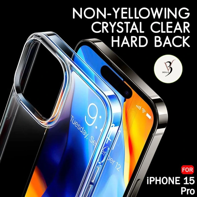 Crystal Clear Hard Back Cover – Compatible with iPhone 15 Pro