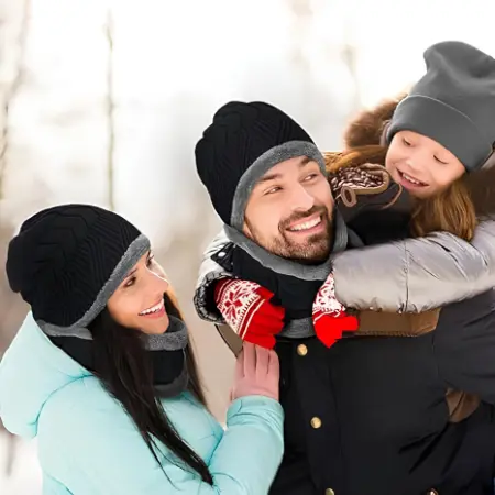 The set is made from premium quality soft wool, providing superior insulation and a cozy feel — perfect winter wear for men and women.