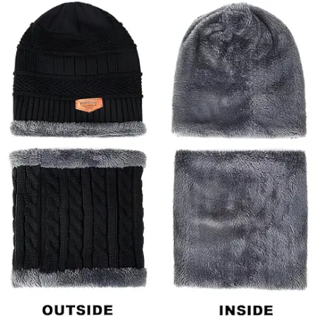 A perfect blend of style and function — this winter cap for man comes with a matching neck warmer muffler. The modern knit design with plush fleece interior.